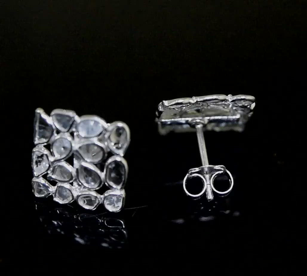 These unique square studs earrings are made with natural Polki diamonds and 925 sterling silver. Our products are handmade and made with high-quality gemstones and 925 sterling silver.