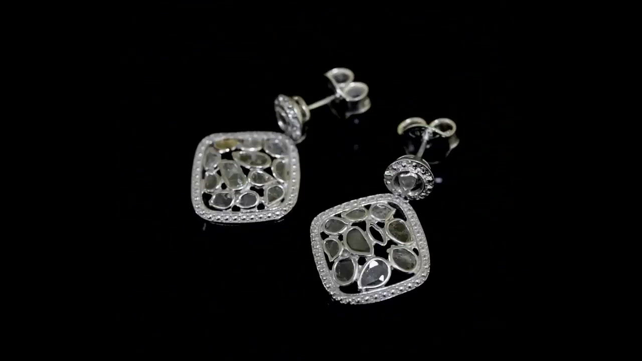 1 CTW Diamond Polki Square Dangle Earrings