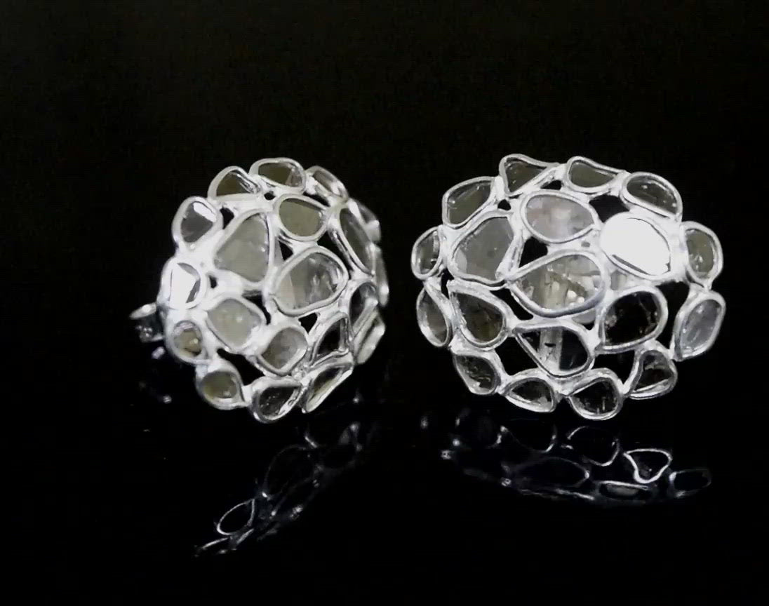 These unique earrings are made with natural Polki diamonds and 925 sterling silver. Our products are handmade and made with high-quality gemstones and 925 sterling silver.