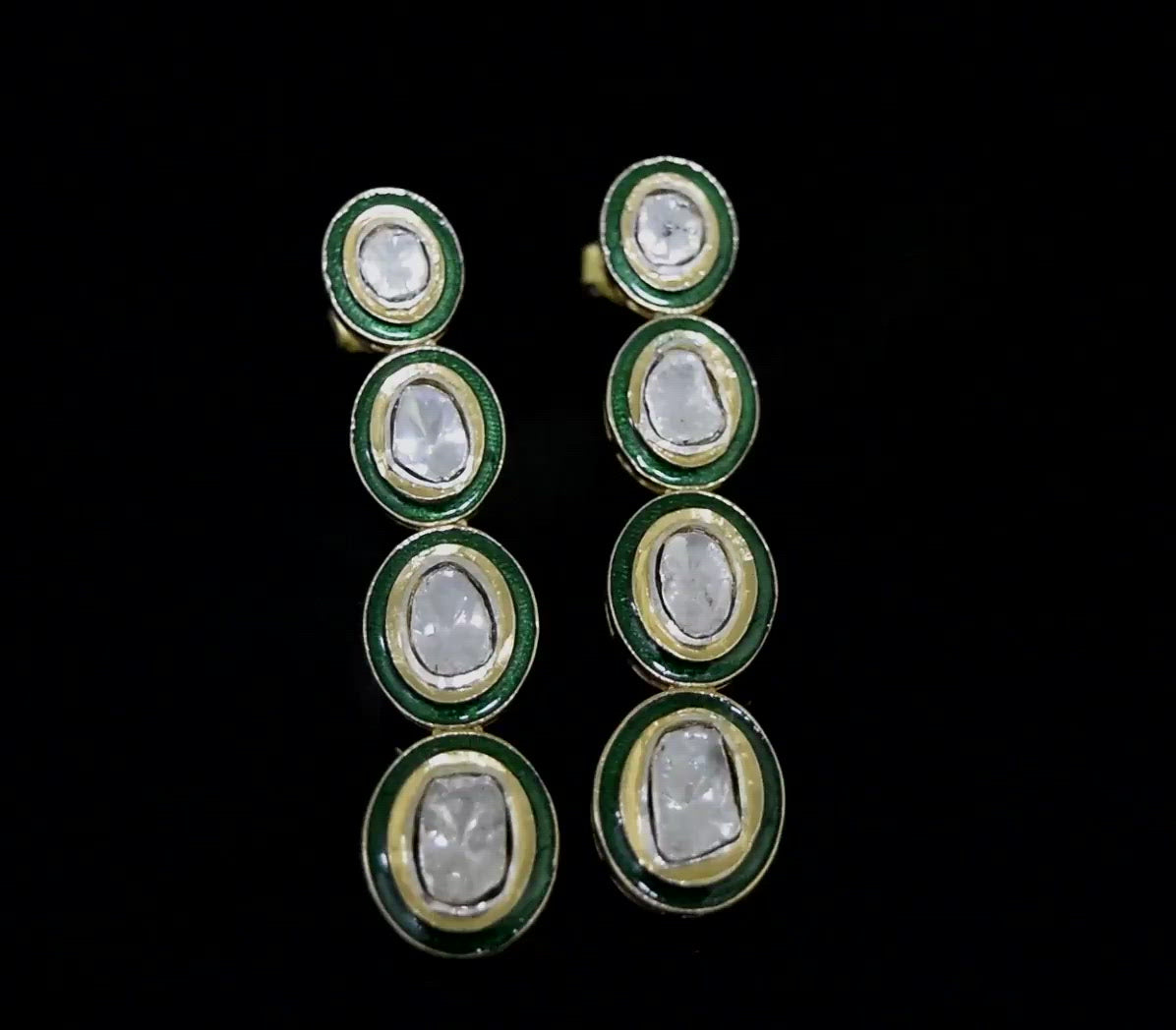 2 CTW Diamond Polki Green Enamel Long Dangle Earrings