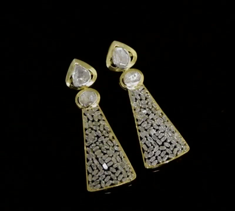 These unique earrings are made with natural polki diamonds and 925 sterling silver and 14K gold plating. Our products are handmade and made with high quality gemstones and 925 sterling silver.