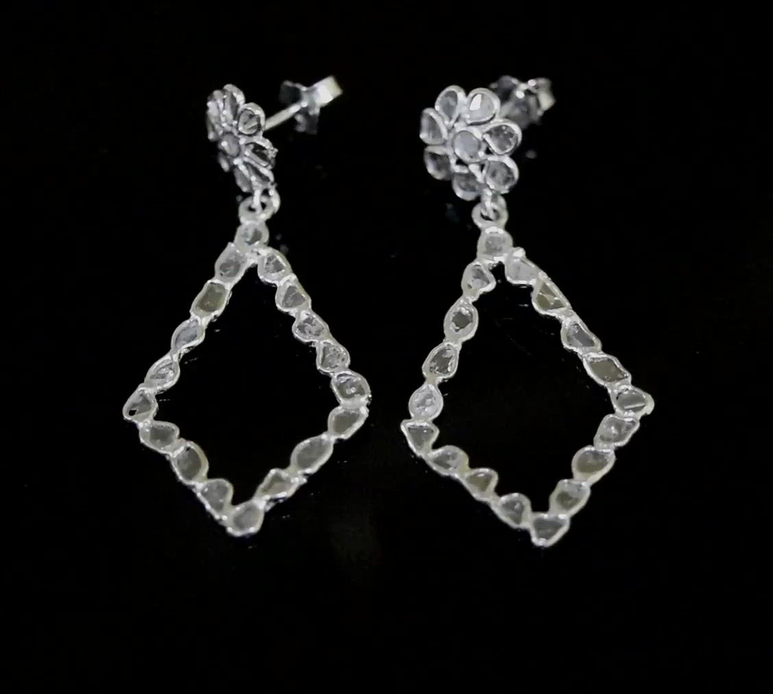 These unique dangle earrings are made with natural Polki diamonds and 925 sterling silver. Our products are handmade and made with high-quality gemstones and 925 sterling silver.