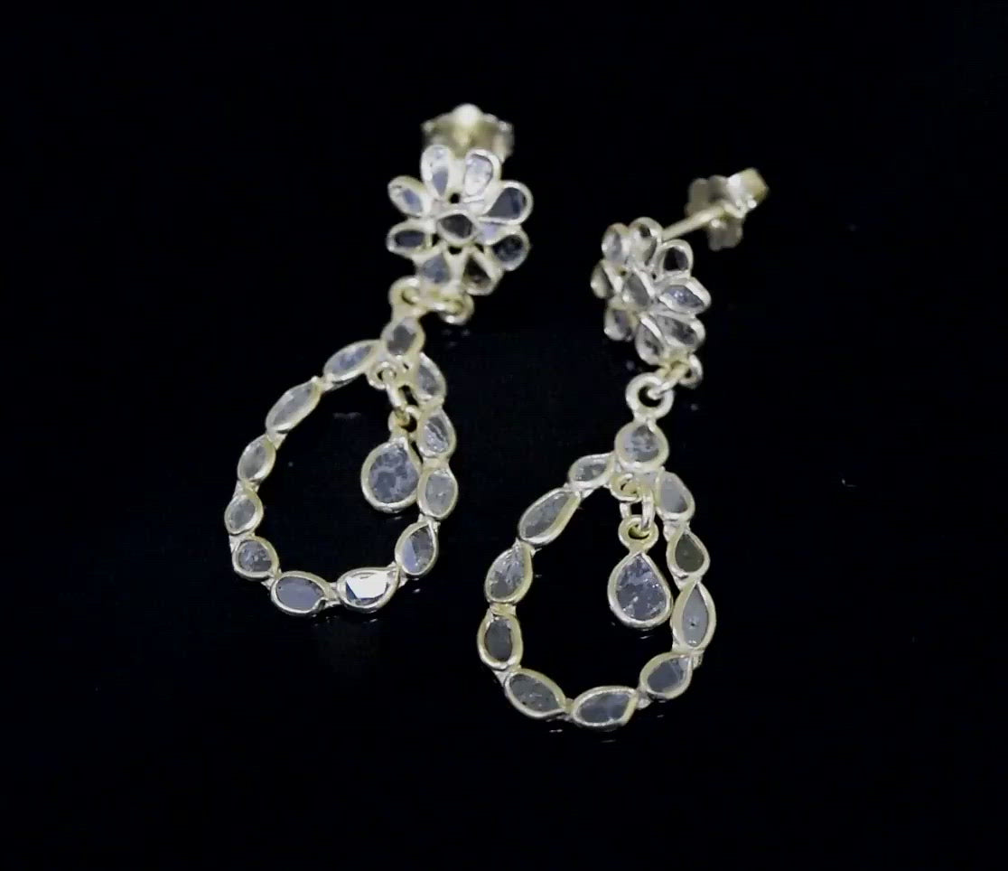These unique earrings are made with natural Polki diamonds and 925 sterling silver and 14K gold plating. Our products are handmade and made with high-quality gemstones and 925 sterling silver.