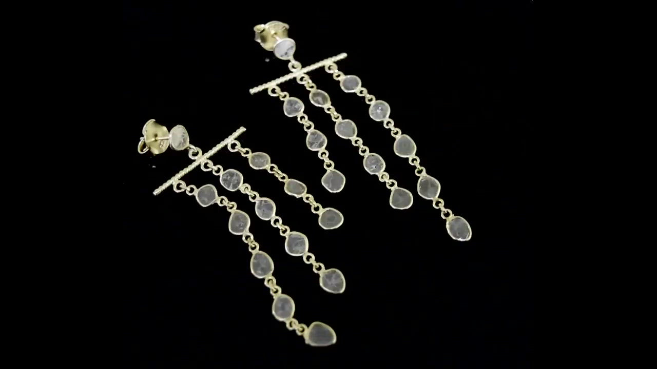 These unique chandelier earrings are made with natural Polki diamonds and 925 sterling silver and 14K gold plating. Our products are handmade and made with high-quality gemstones and 925 sterling silver.