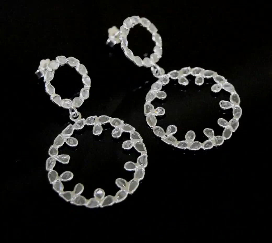 These unique double circle earrings are made with natural Polki diamonds and 925 sterling silver. Our products are handmade and made with high-quality gemstones and 925 sterling silver.