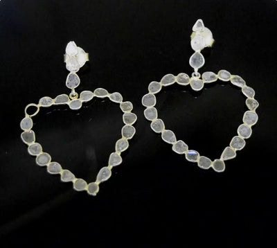 These unique heart-shaped earrings are made with natural Polki diamonds and 925 sterling silver and 14K gold plating. Our products are handmade and made with high-quality gemstones and 925 sterling silver.