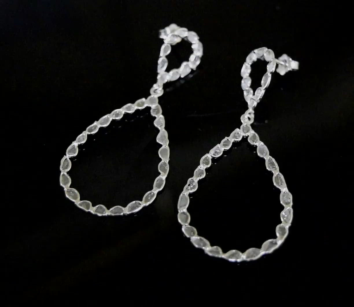 These unique pear-shaped earrings are made with natural Polki diamonds and 925 sterling silver. Our products are handmade and made with high-quality gemstones and 925 sterling silver.
