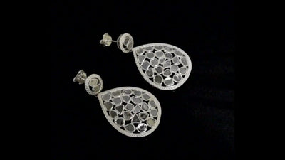 These unique earrings are made with natural Polki diamonds and 925 sterling silver. Our products are handmade and made with high-quality gemstones and 925 sterling silver.