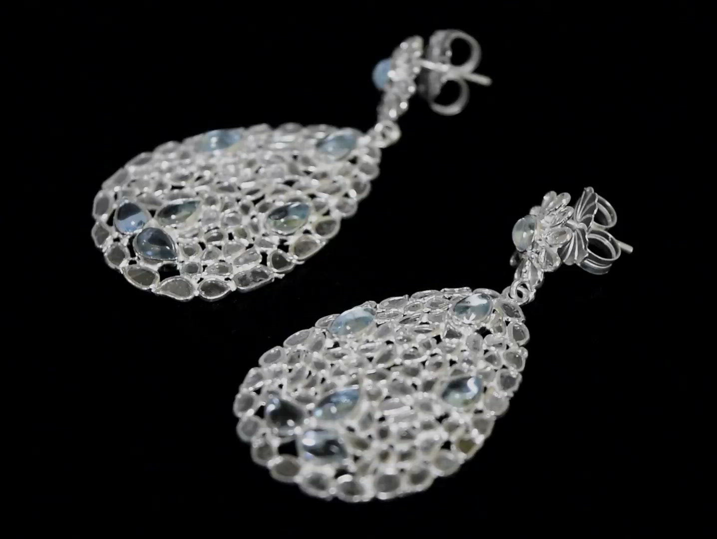 These unique pear-shaped earrings are made with natural Polki diamonds and 925 sterling silver. Our products are handmade and made with high-quality gemstones and 925 sterling silver.