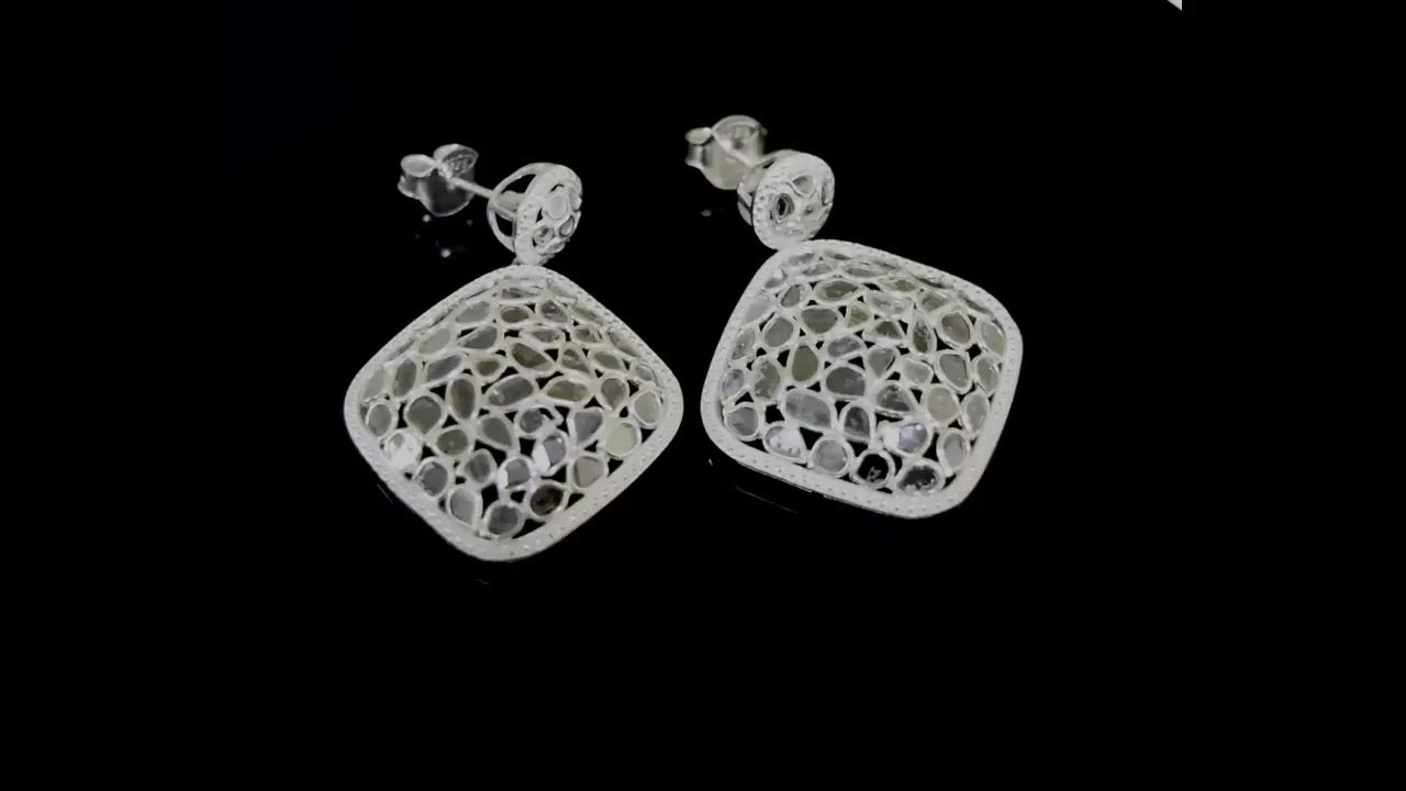 6.70 CTW Diamond Polki Square Dangle Earrings