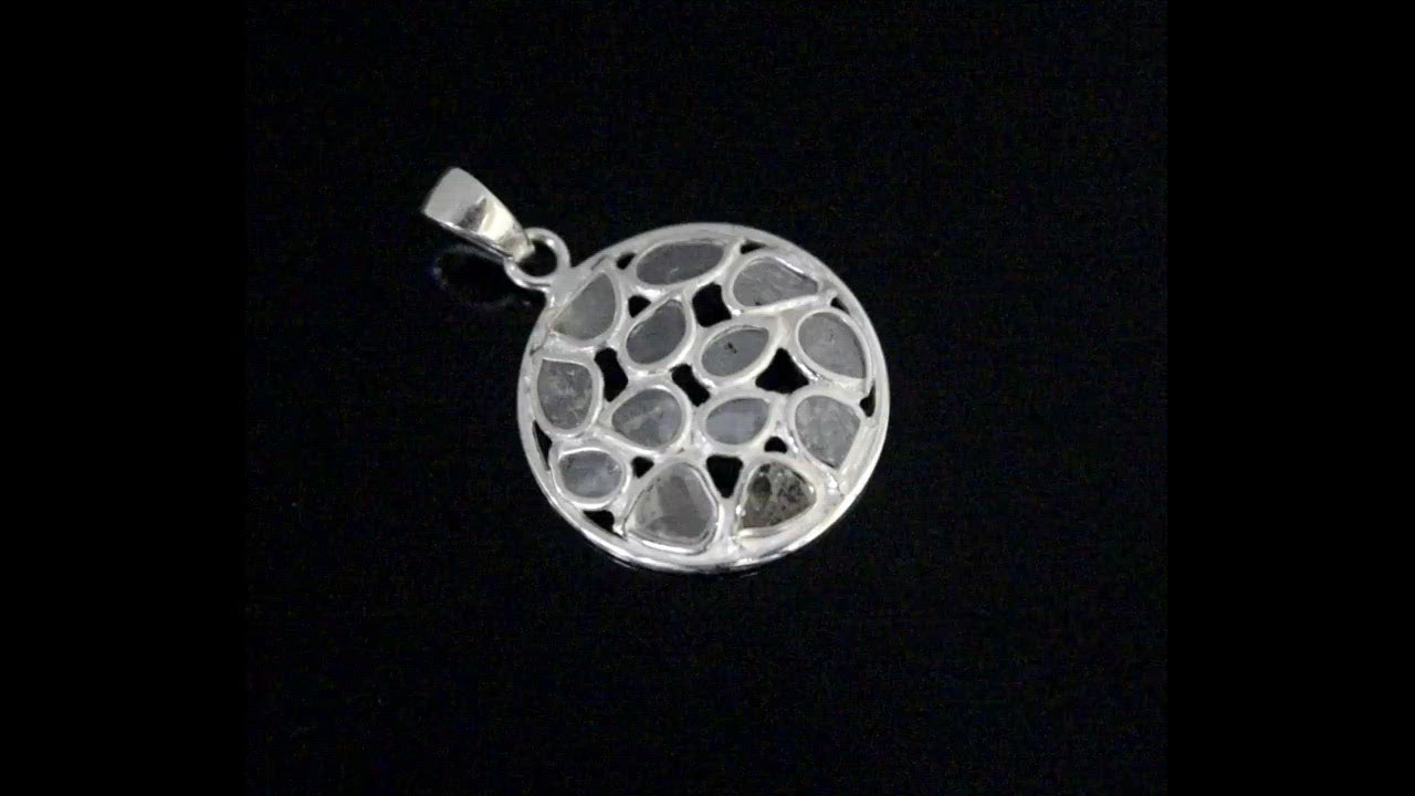 This unique round pendant is made with natural Polki diamonds and 925 sterling silver. Our products are handmade and made with high-quality gemstones and 925 sterling silver.