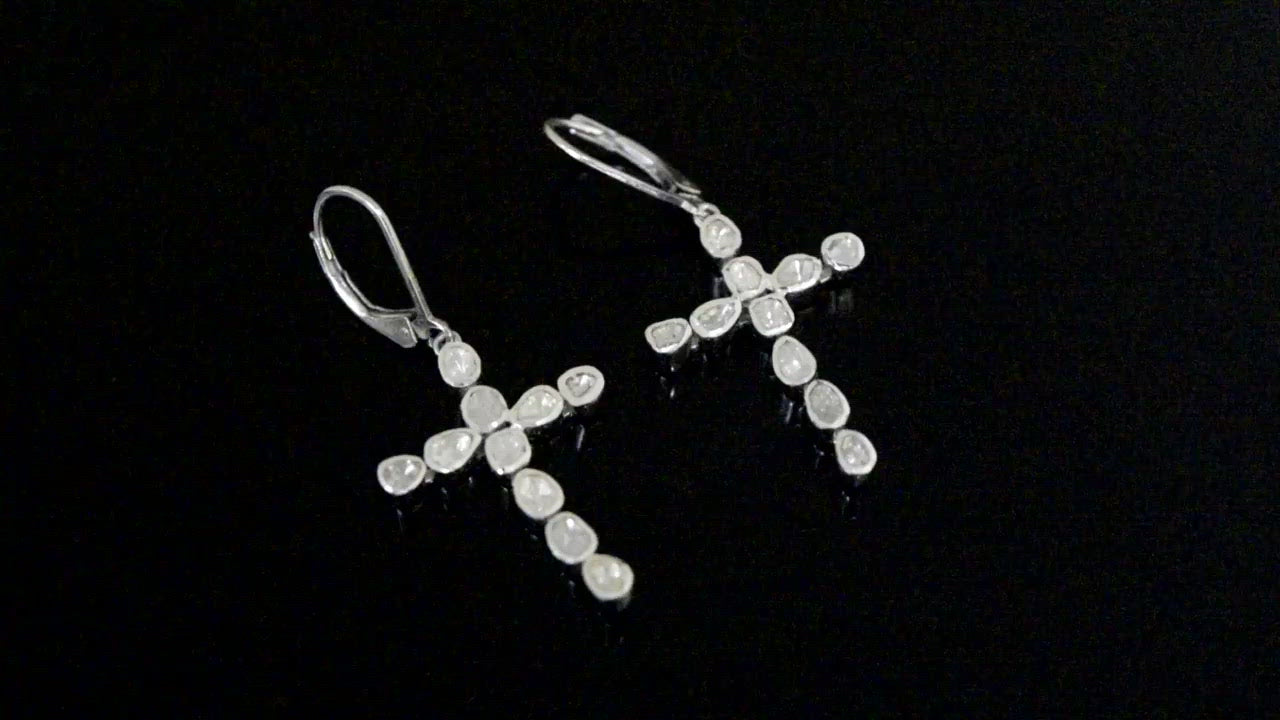 2.50 CTW Diamond Polki Cross Dangles Earrings