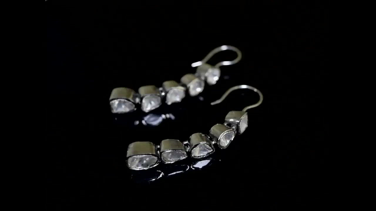 These unique dangle earrings are made with natural Polki diamonds and 925 sterling silver. Our products are handmade and made with high-quality gemstones and 925 sterling silver.