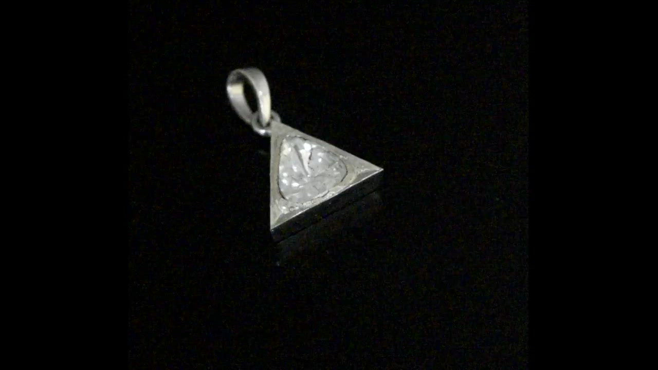 This unique triangle pendant is made with natural Polki diamonds and 925 sterling silver. Our products are handmade and made with high-quality gemstones and 925 sterling silver.