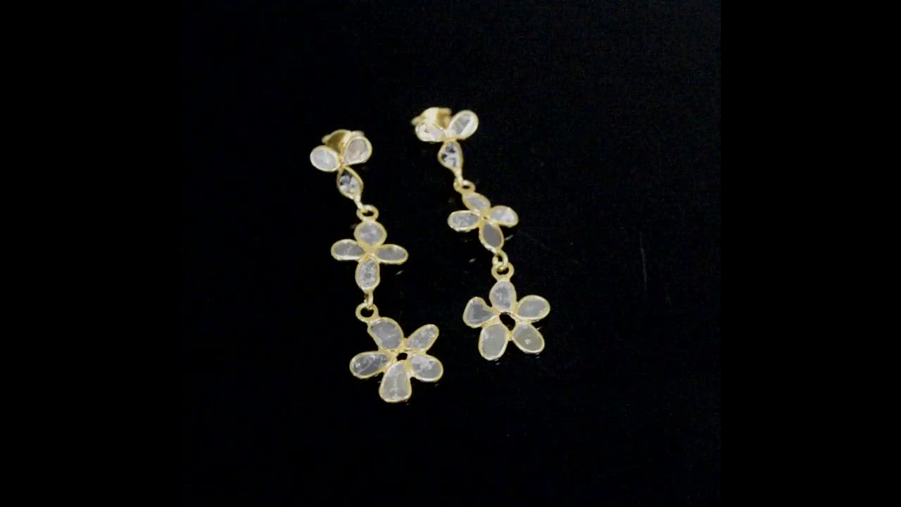 1.20 CTW Diamond Polki Flower Dangle Earrings