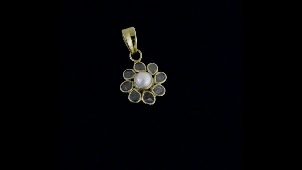 Diamond Polki Pearl Floral Pendant Set