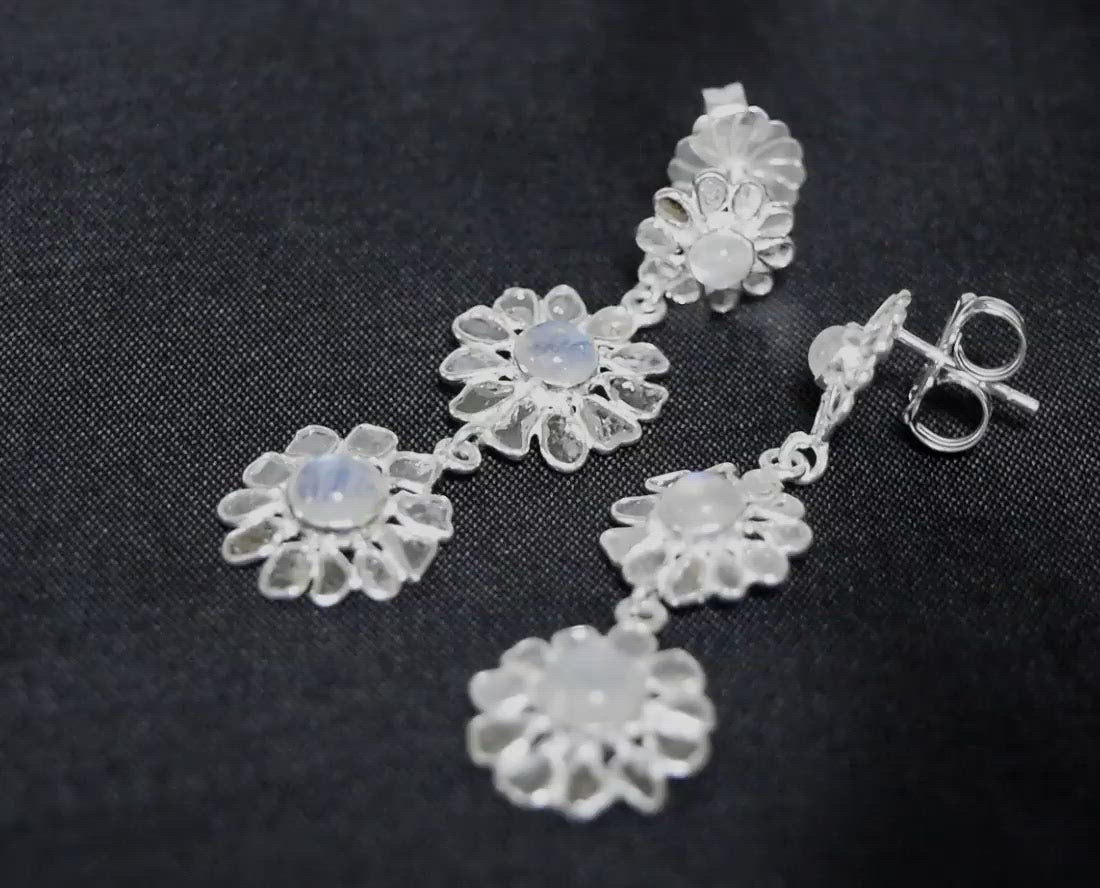3 CTW Diamond Polki Moonstone Chain Earrings