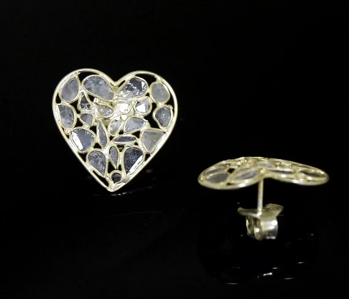 These unique heart-shaped earrings are made with natural Polki diamonds and 925 sterling silver with 14K Gold Plating. Our products are handmade and made with high-quality gemstones and 925 sterling silver.